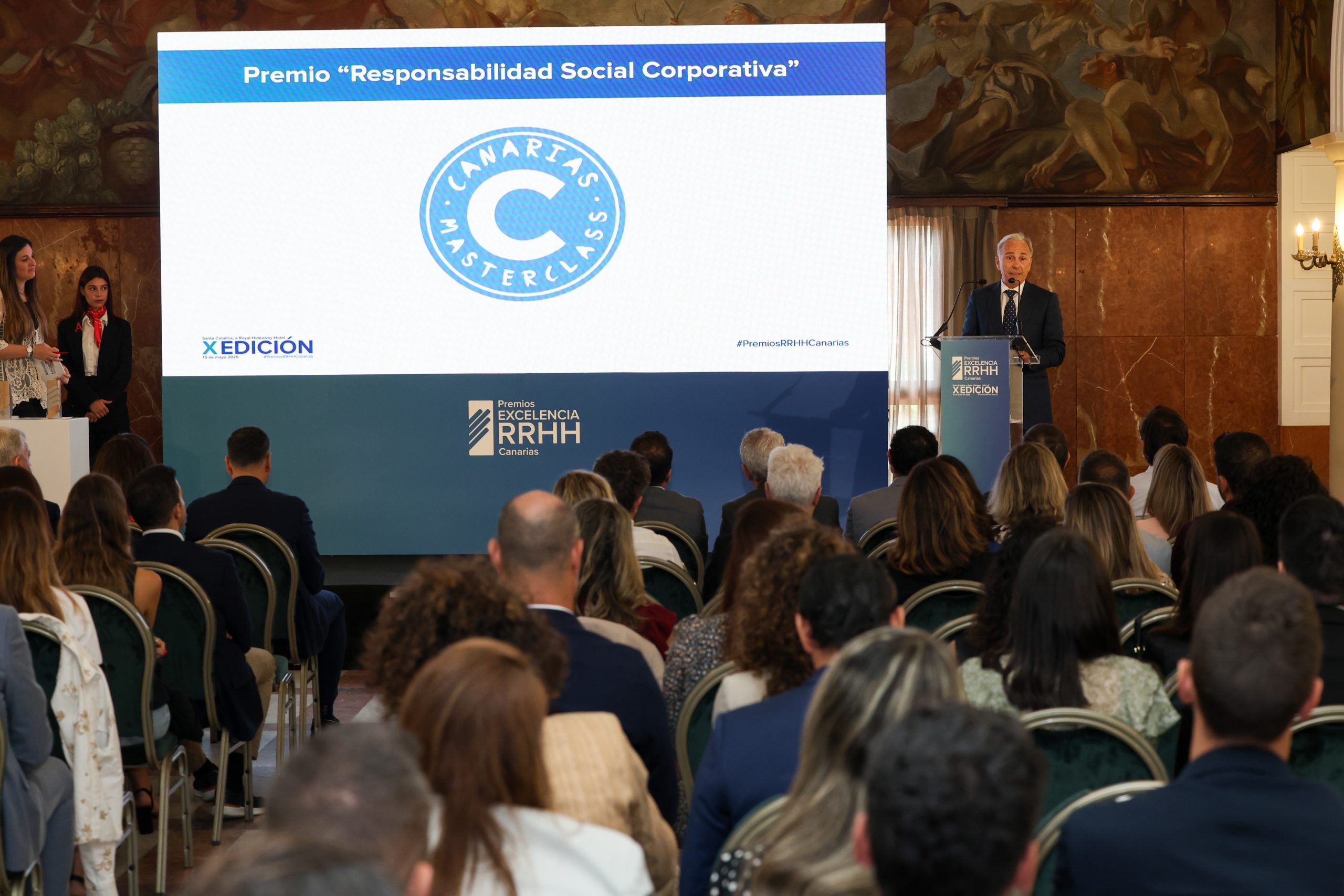 En Responsabilidad Social Corporativa, el jurado distinguió a Canarias Masterclass, una iniciativa impulsada por la Asociación Canary Talent. El proyecto, consolidado tras diez ediciones, ha conectado a cientos de jóvenes con empresas y mentores en una experiencia de orientación vocacional transformadora y de gran impacto social. Recibió el reconocimiento Enrique Areilza, Presidente de la Asociación, quien agradeció el