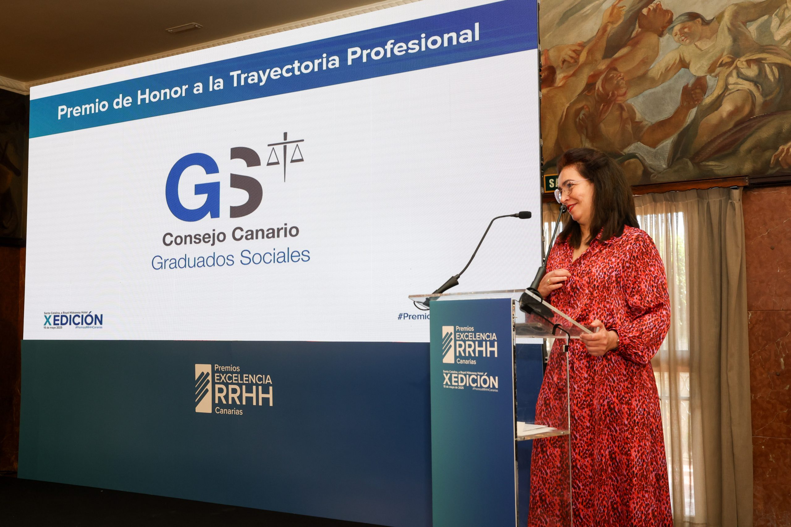 En una edición especialmente significativa, el jurado decidió otorgar el Premio de Honor a la Trayectoria Profesional al Consejo Canario de Graduados Sociales, en conmemoración del centenario de la profesión que se celebra el próximo 17 de agosto de 2025. La distinción reconoce su histórica labor, su papel clave en las pymes canarias y su contribución esencial a la justicia social. Recogió el premio Sandra Eugenia Santana Trujillo, en nombre de Mercedes Morales, Presidenta del Consejo Canario de Graduados Sociales.